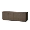 La Buffetera Domus es una pieza que combina carácter rústico con líneas actuales, pensada para convertirse en protagonista del espacio mientras aporta organización. Su diseño monolítico con acabado contundente y herrajes sobredimensionados le otorga presencia visual sin complejidad.