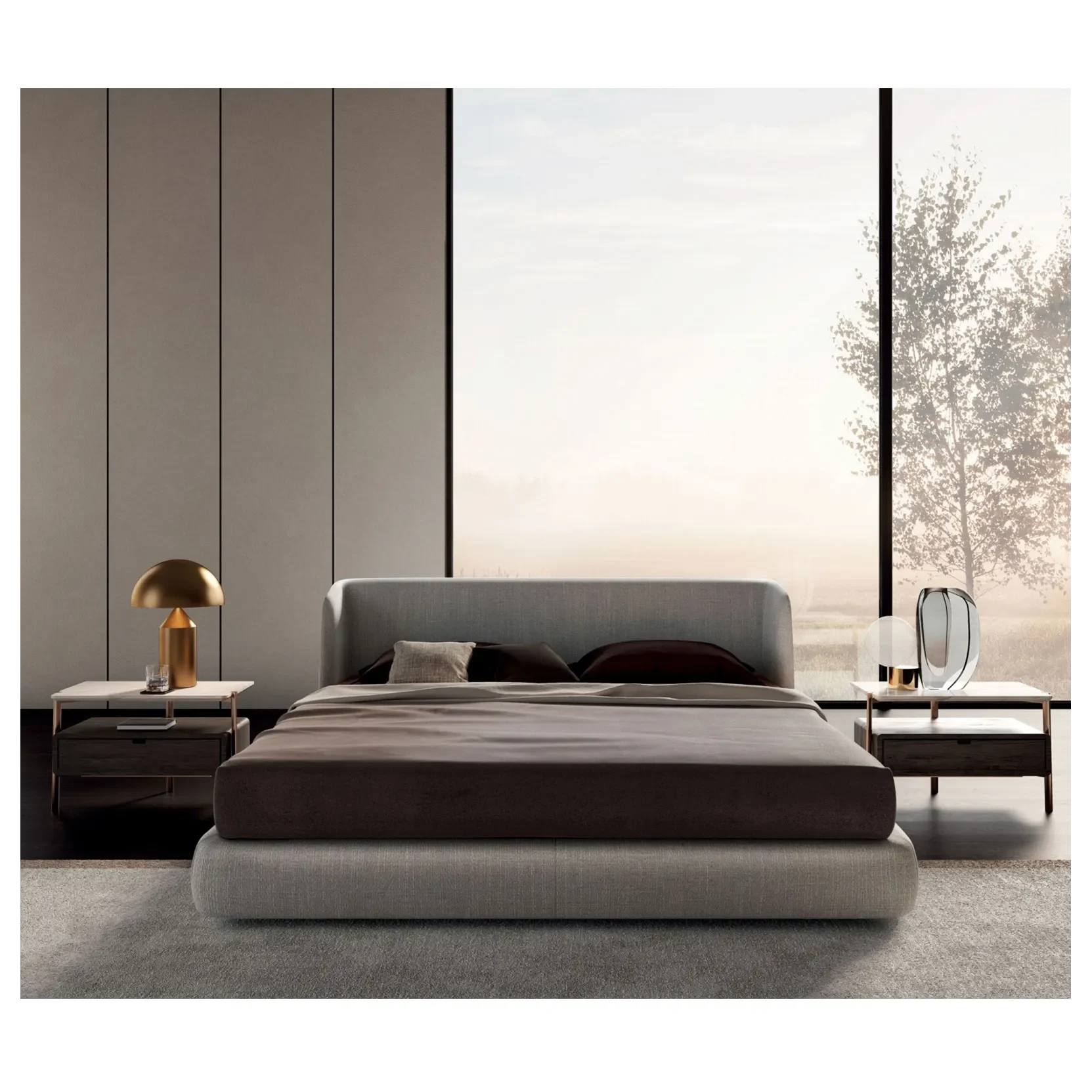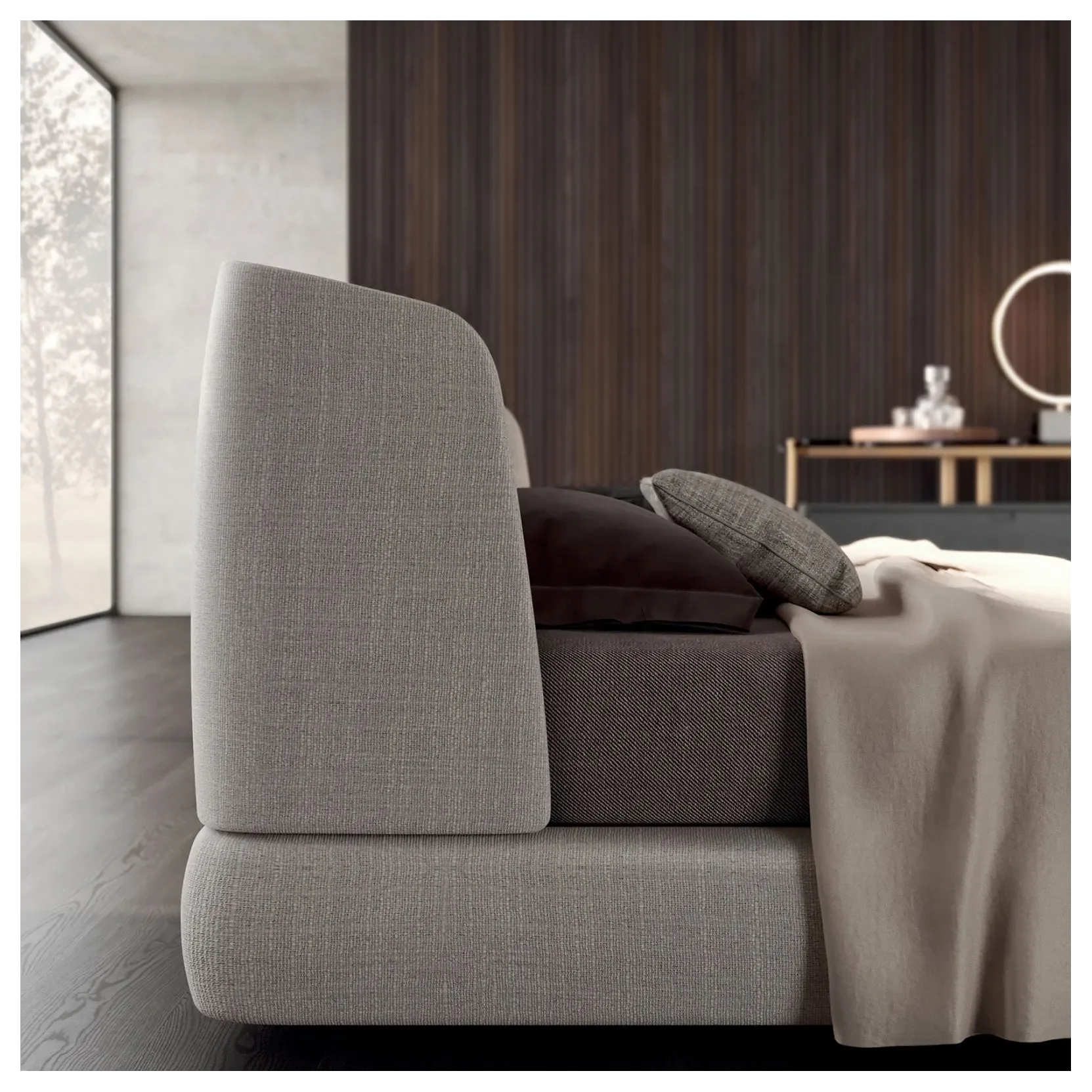 La Cama Anchelotti es una pieza que combina elegancia contemporánea con detalles cuidadosamente diseñados para realzar el dormitorio. Su cabecera y plataforma totalmente tapizadas aportan una presencia acogedora y sofisticada, mientras las costuras verticales en los largueros y el respaldar crean un juego visual sutil que eleva su estética y le da una identidad distinguida.