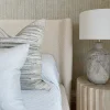 La Cama Calyra fusiona elegancia contemporánea con comodidad envolvente. Su cabecero con ligera curvatura y su estructura baja con tapizado bouclé crean una presencia cálida y sofisticada que redefine el espacio de descanso.