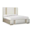 La Cama Selene equilibra minimalismo y textura con un diseño sobrio y envolvente. Su cabecero y piecero con paneles tapizados combinados con detalles de madera crean una pieza elegante que aporta calidez sin exagerar.