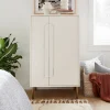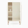 ✅ Interior balanceado: puertas dobles con tres estantes ajustables en un lado y espacio para colgar ropa con barra removible en el otro.