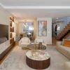✅ Contraste sofisticado de materiales – La combinación entre madera oscura y superficie de piedra genera una estética refinada y moderna.