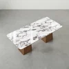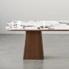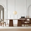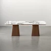 La Mesa de Comedor Lurex es una pieza diseñada para combinar elegancia contemporánea con materiales de alto rendimiento. Su sobre en piedra sinterizada (a Escoger Según Inventario) aporta una estética sofisticada tipo mármol, mientras su base en madera genera un contraste cálido que equilibra el diseño y eleva la presencia del comedor.