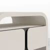 La Mesa de Noche Nox combina estética postmoderna con funcionalidad contemporánea. Con su acabado lacado elegante y detalles, ofrece presencia refinada junto con capacidad práctica para el dormitorio.