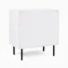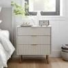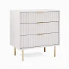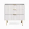 La Mesa de Noche Veya fusiona lujo moderno y funcionalidad refinada. Con frentes acanalados, estructura robusta de madera y patas elevadas en acabado metálico, aporta presencia elegante sin perder versatilidad.