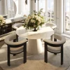 La Silla Marck es una pieza que destaca por su silueta envolvente y su presencia elegante, diseñada para aportar confort y distinción al comedor. Sus líneas curvas suavizan el ambiente y crean una sensación acogedora al sentarse, mientras su estructura definida le da un carácter sobrio y contemporáneo, ideal para espacios que buscan equilibrio entre diseño y funcionalidad.